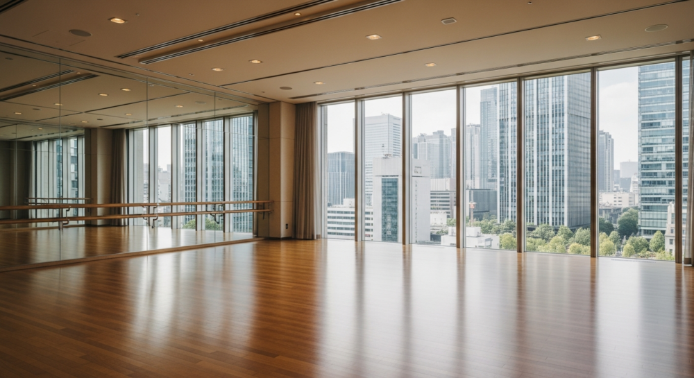 銀座3丁目という好立地にありながら、深夜や早朝でも利用できるのは、不規則な生活を送る方や、発表会前に追い込みたい方にとって大きな味方となります。鏡張りでバレエに適した床材も備わっており、公式サイトの情報では、清潔感のある空間が維持されているようです。